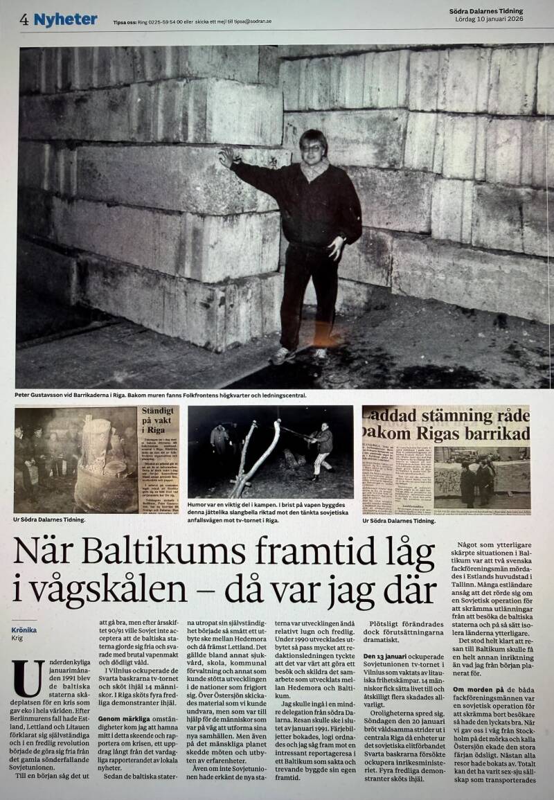 Av en händelse befann sig Peter Gustavsson, journalist på Södra Dalarnes Tidning på plats, och kunde rapportera om de dramatiska händelserna. I en krönika den 10 januari i år i samma tidning reflekterar han över resan till Baltikum för 35 år sedan.